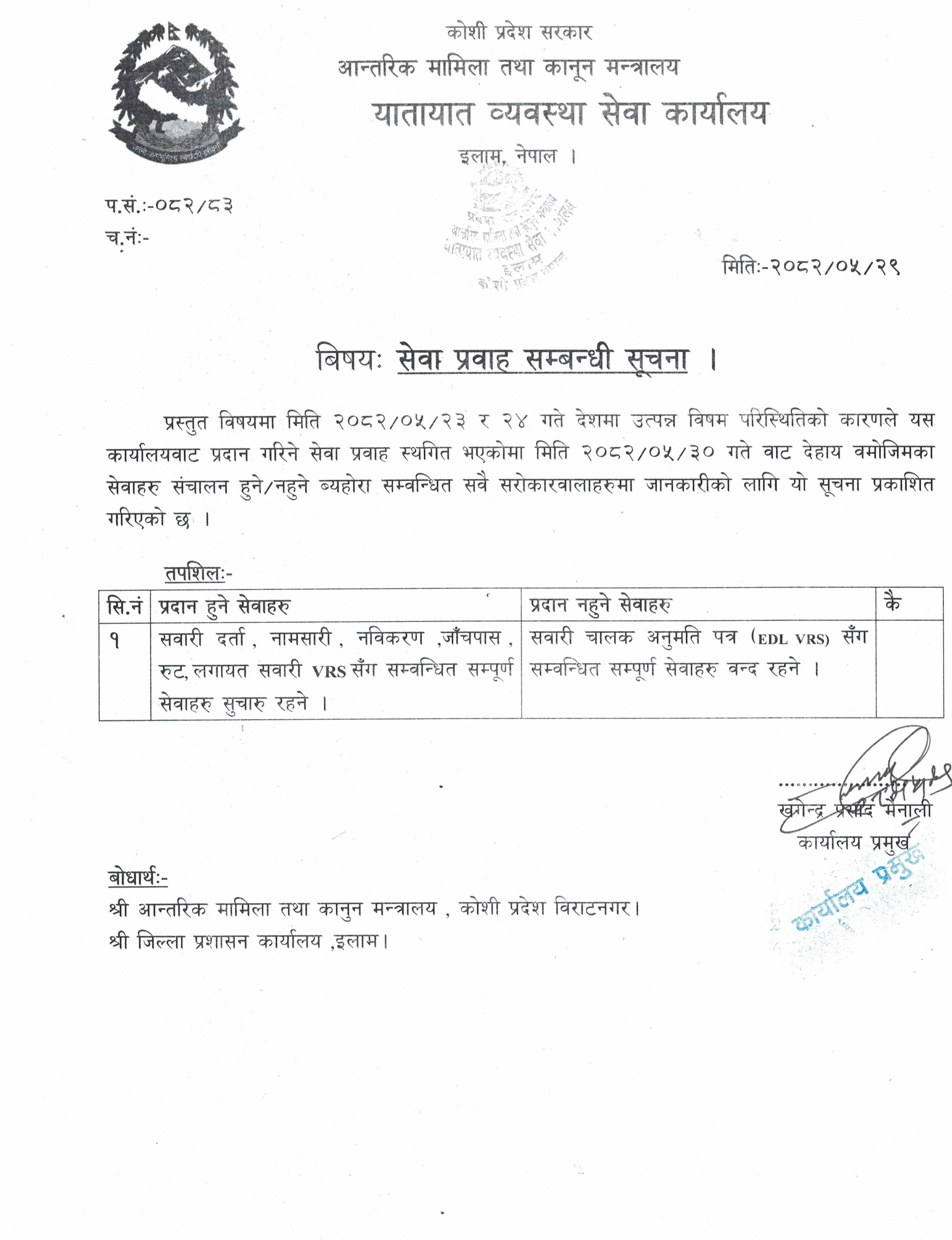 यातायात व्यवस्था सेवा केन्द्र, इलाम।